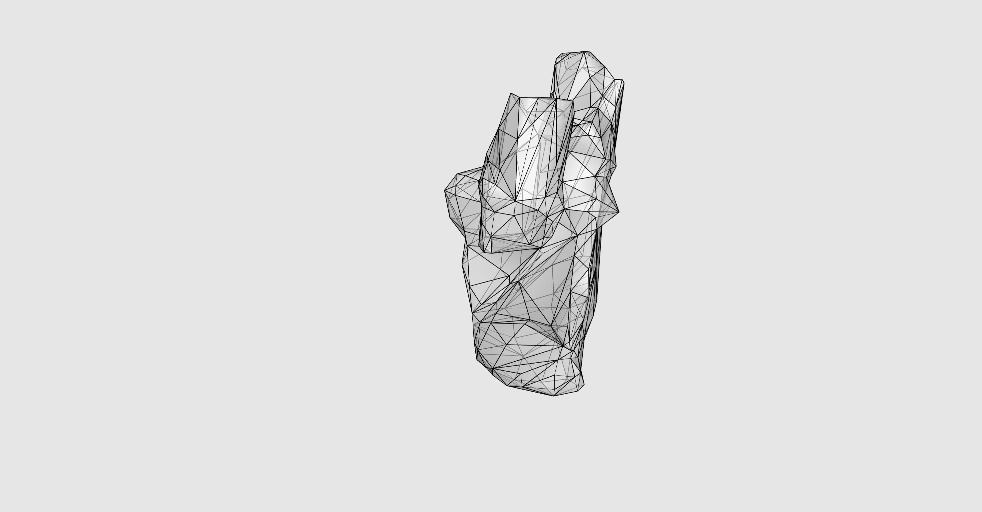 The program used to create the 3D models is Grasshopper, which is a plugin for the 3D modeling program Rhinoceros 3D. Grasshopper allows you to string modeling commands together in a connected linear fashion while simultaneously incorporating options and alternatives into the network of commands. This ‘equation’ is parametric because it allows for the output of many different models that are both unique and visually similar because of the subtle tweaking of parameters throughout. This particular parametric equation is based on random point population, random list culling, 3D voronoi shapes, and mesh smoothing. The various rock shapes below were all created from the same parametric equation and all have a 500 mesh face count.